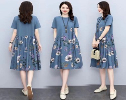 NT$1298【新品上市】文藝復古風~大碼印花連衣裙 夏季新款 遮肉顯瘦寬鬆舒適休閑A字裙詳情 - 智能砭石刮痧儀NT$998