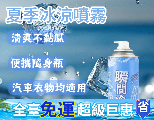 噴一下,從頭頂涼到腳底!」夏季冰涼噴霧,隨身降溫神器,夏天,救星~採用獨特冷卻配方,噴在衣服或皮膚上,水分蒸發瞬間帶走熱氣,體感溫度馬上降,戶外活動不再像烤蕃薯