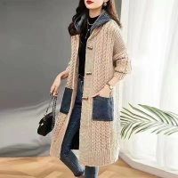 【100%澳洲羊毛】會穿是魅力,會挑是能力!長版毛衣拼接牛仔連帽外套 ,顯高顯瘦顯氣質,不挑年齡不挑人,時尚減齡,誰穿誰好看!