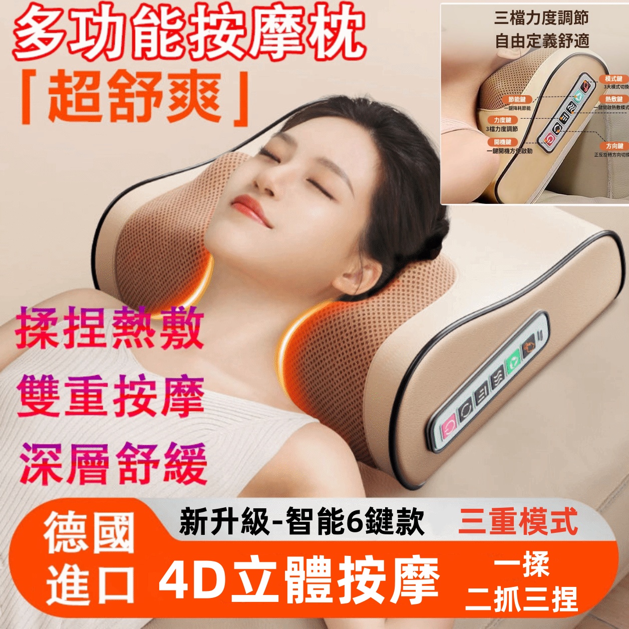 [1]【多功能按摩枕-新升級六鍵款】(110V)1入組 --NT$1298
