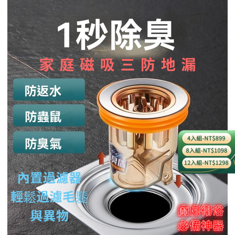 衛浴廚房通用防臭地漏 下水管道防返水防蟲鼠 防臭味神器 磁吸密封蓋