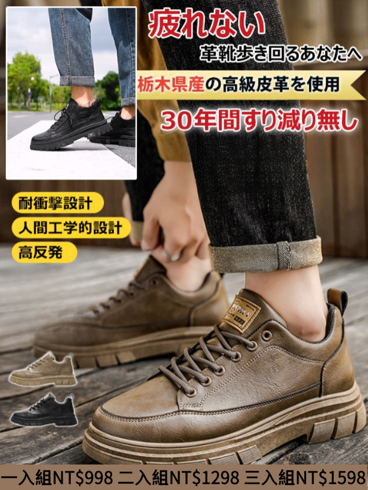 [3]【真皮綁帶皮鞋】【防水防污塗層,雨天出行不沾溼,清潔省心!】3入組 NT$1598