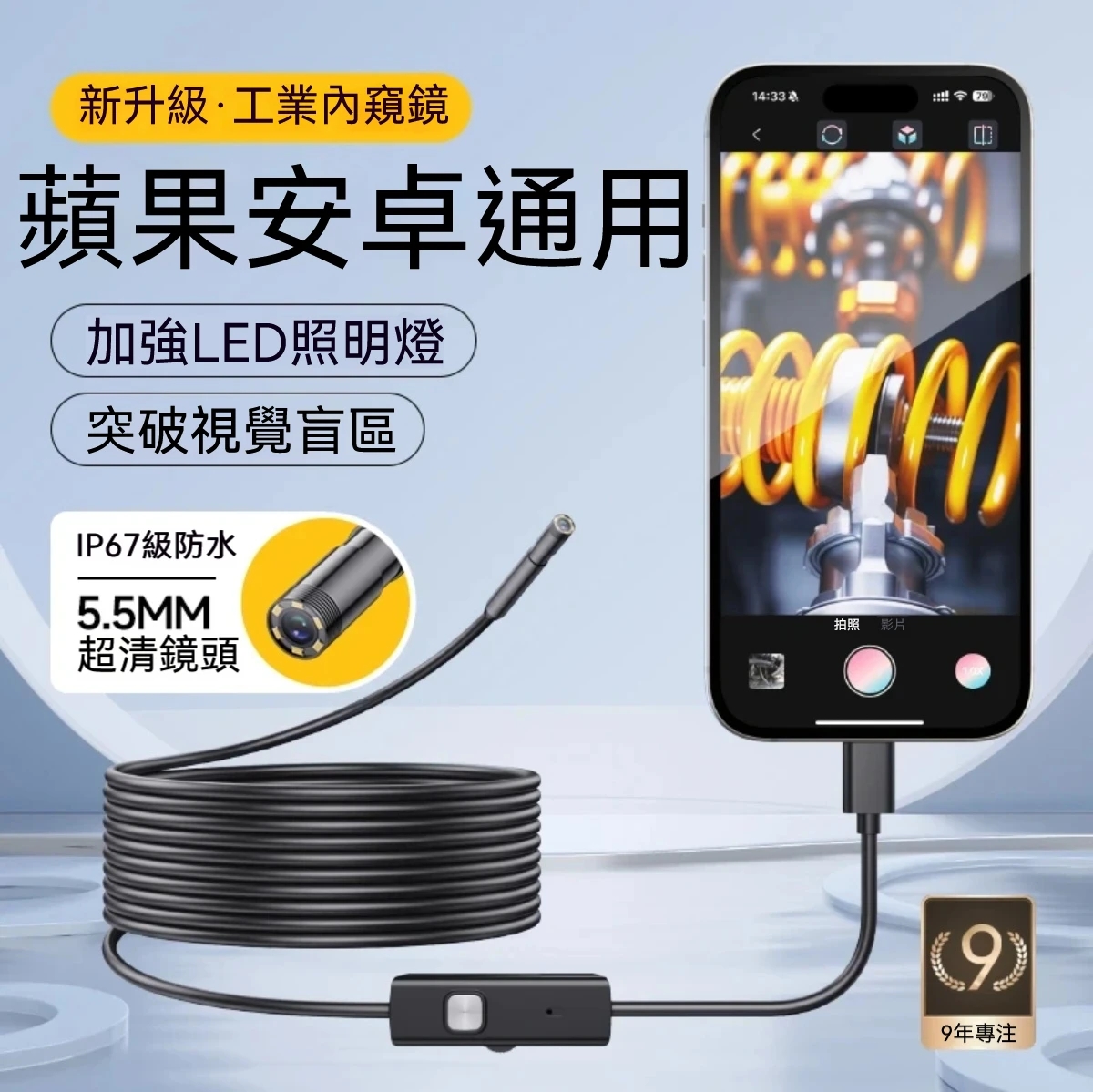 [1]TypeC手機內窺鏡5.5mm硬線(可任意折彎塑形)(10M)1入組-NT$1299